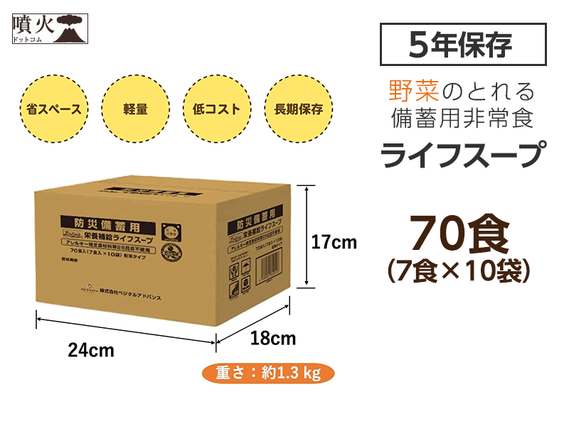 「ライフスープ」は火山灰被害や避難所生活で不足しがちな野菜の栄養を、美味しく、手軽に摂ることができます。