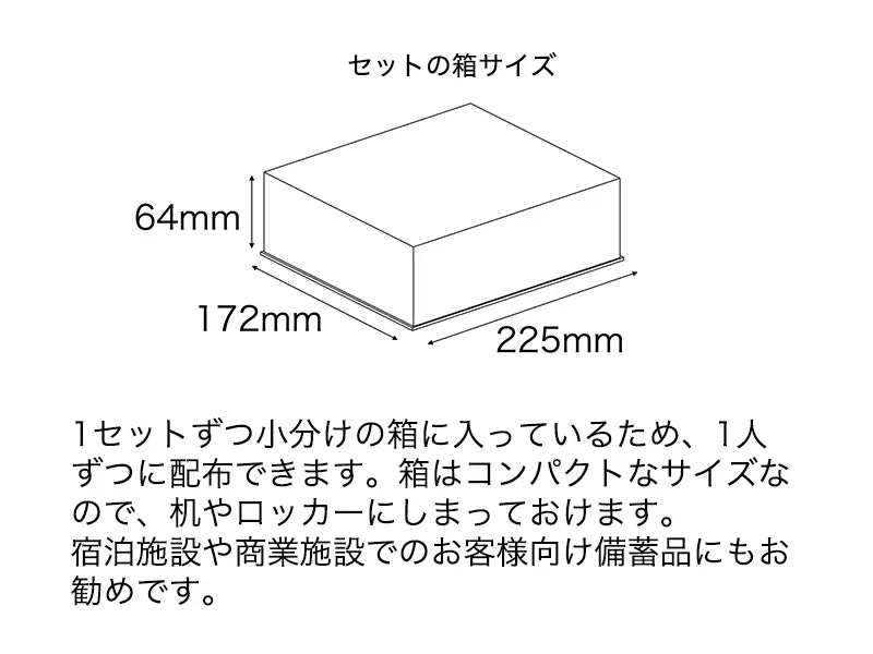 1セットずつ小分けの箱に入っているため、1人ずつに配布できます。箱はコンパクトなサイズなので、机やロッカーにしまっておけます。